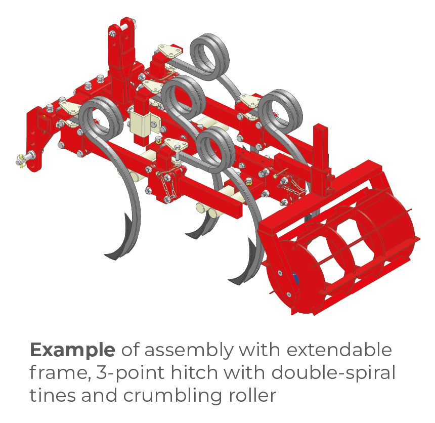 Designed for higher powered continuous track vehicles (40 hp minimum), our frames enable you to work in plantations with variable widths (different models from 1.10 meters to 2.50 meters.)