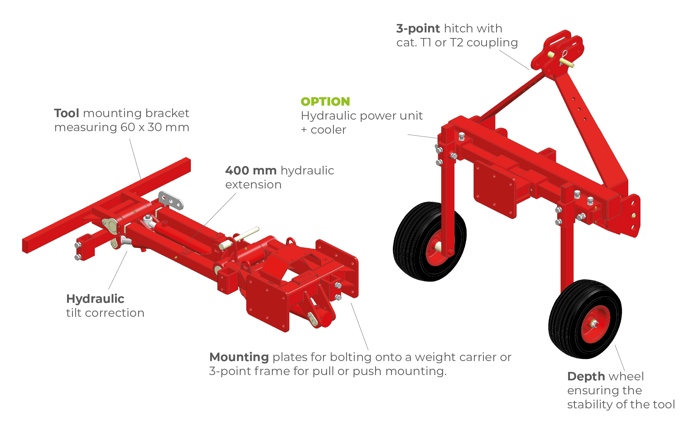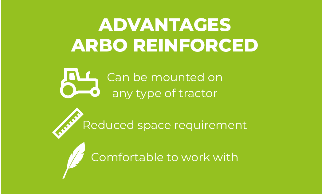 « The ARBO REINFORCED TOOL HOLDER can be mounted on the front or rear hitch of a tractor, as well as in a fixed frontal position. Thanks to different attachments, it can be used with a pruning sweeper head, to carry out soil maintenance work or to manage weeds in wide plantations. It can be mechanically or hydraulically retracted with an EVO4 Servomotor. »