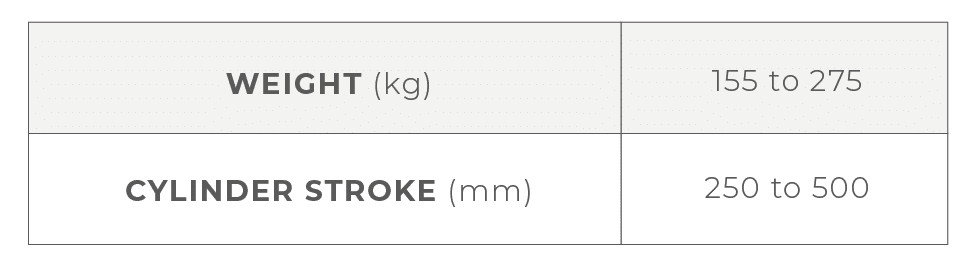 Caractéristiques techniques cadre COMPACT, poids, course du vérin, longueur de branche, longueur hors-tout