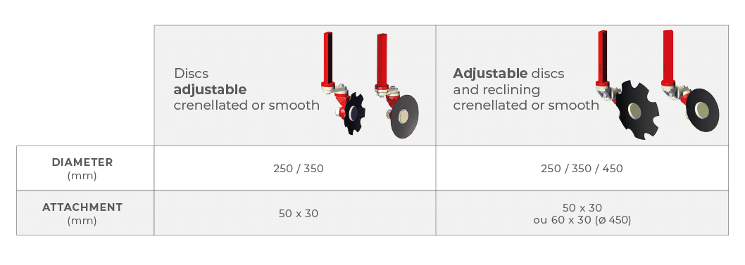 Each element is orientable, equipped with a plant protector and can be composed of 2 or 3 discs.