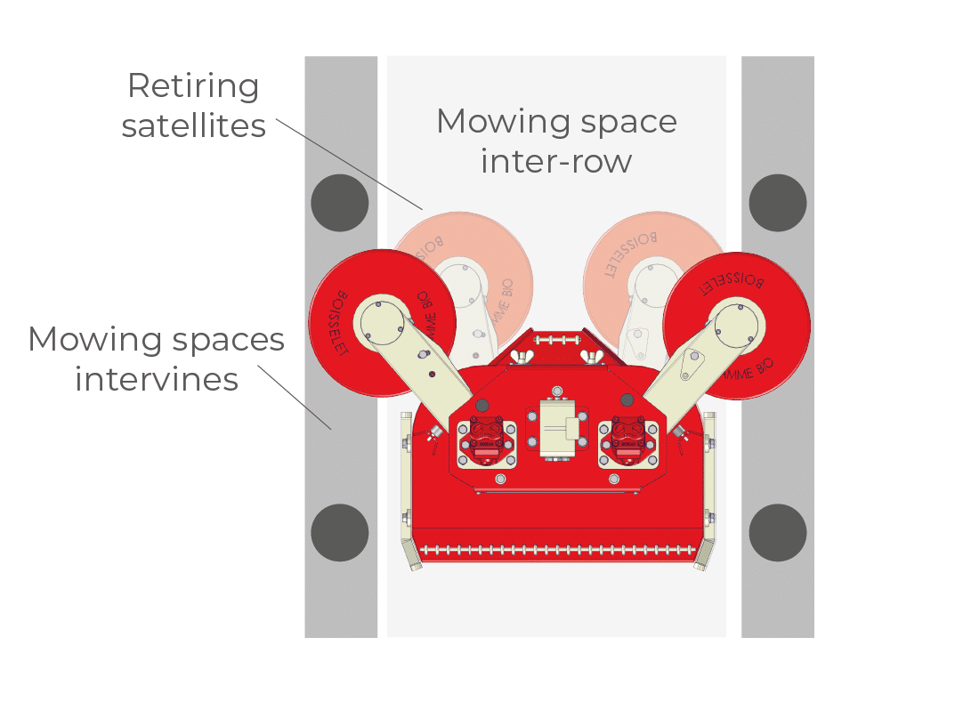 The INTEGRA® mower allows inter-row work as well as inter-vine mowing for plantations from 0.90 to 1.20 m.
