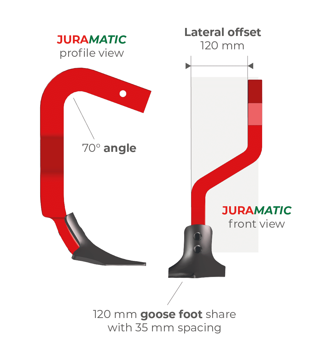 JURAMATIC allows the soil to be broken up as close as possible to the plants. This lifts and aerates the soil from the inter-vine row.
