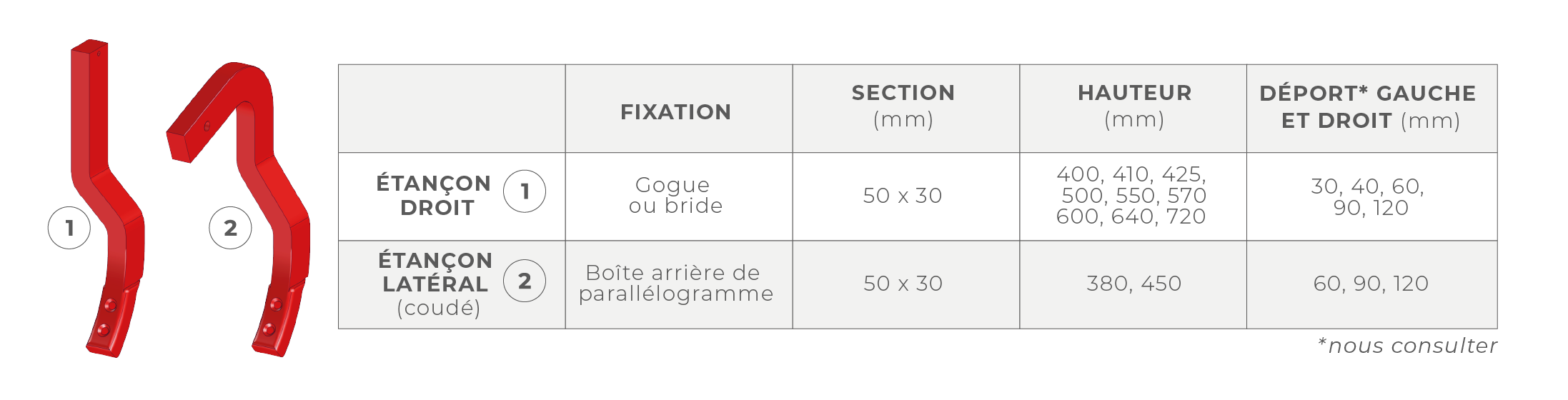 Pour l’utilisation de soc en position mobile, les étançons sont équipés de socs asymétriques fixés sur des structures souples appelées des parallélogrammes.