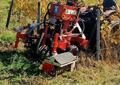 « Avec un axe de rotation horizontal, la gamme des MINI-ROTOFILS permet un nettoyage mécanique. Ils permettent ainsi de détruire les herbes difficiles à atteindre autour des plants, écorces et mousses qui abritent les parasites. Ils peuvent être utilisés en désherbage et en épamprage. »