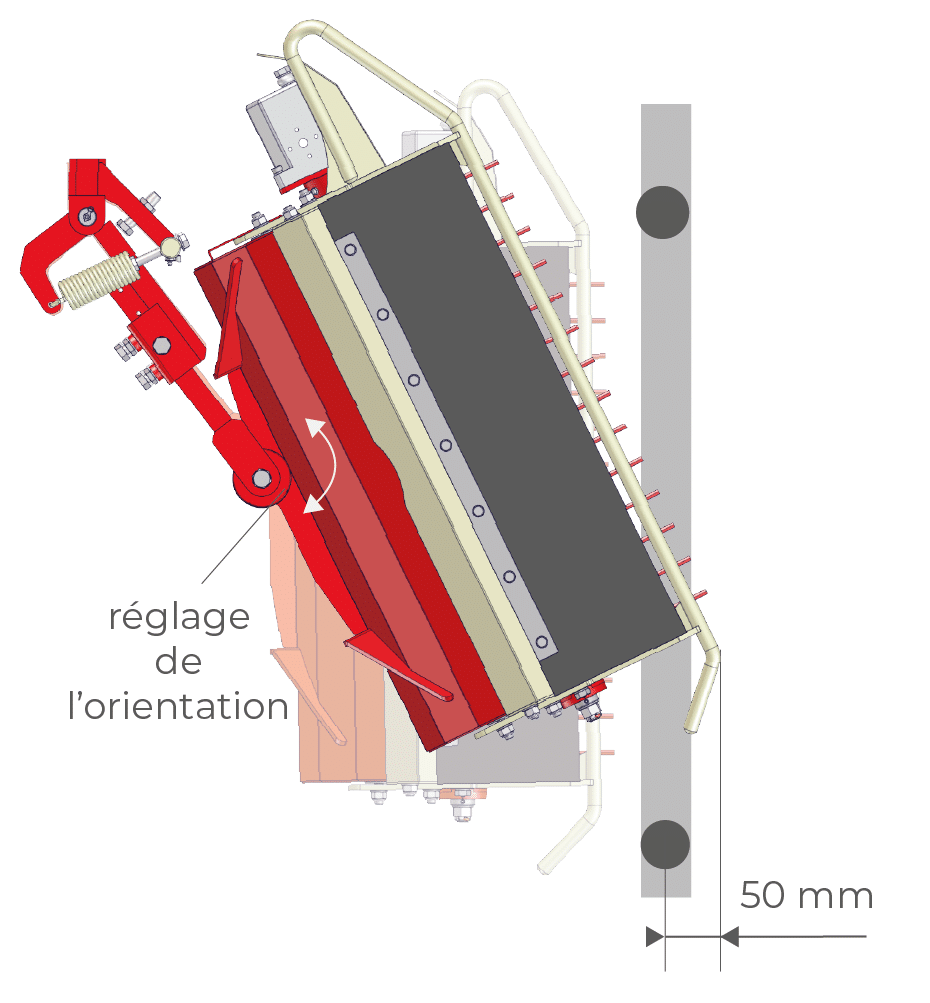 Fixé sur un parallélogramme mécanique, l’outil MINI-ROTOFIL peut au contact du plant s’effacer et ainsi mieux le respecter.