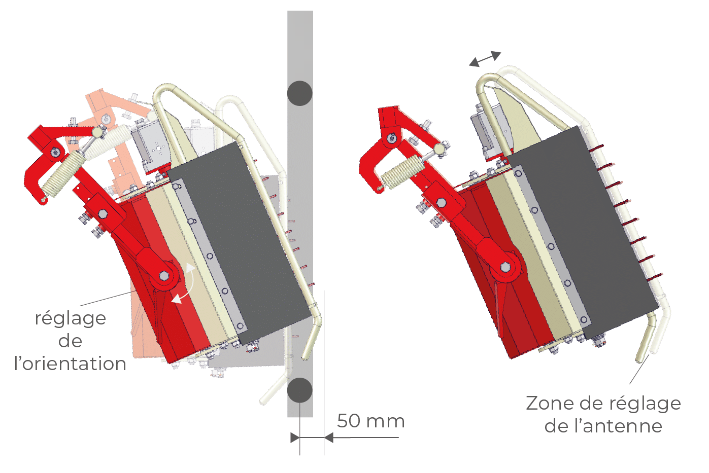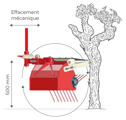 Fixé sur un parallélogramme mécanique, l’outil MINI-ROTOFIL peut au contact du plant s’effacer et ainsi mieux le respecter.