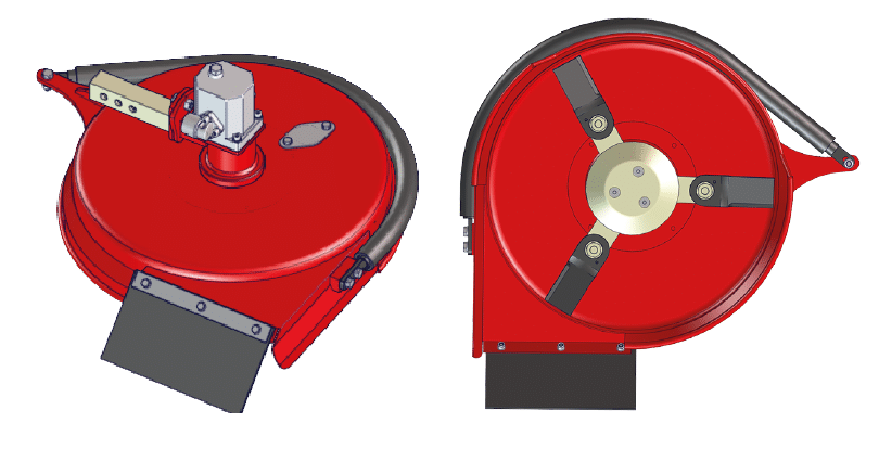 TONDO BROYEUSE Ø 600 mm, avec moteur centré (MC). Elle est équipée d’un moteur hydraulique centré entraînant un porte-lames pourvu de 6 couteaux.